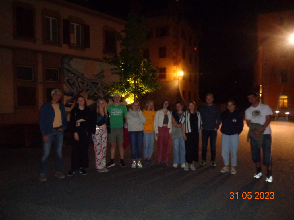 Vergeblich haben einige Schüler versuchten mit Hinweisen („Zahle“ dies … „Zahle“ das … „auso“) die Lehrer darauf aufmerksam zu machen, die Rechnung zu verlangen und gemeinsam den Heimweg anzutreten. Als wir dann das Restaurant verliessen, schmückten die Sterne, Planten und ein Vortrag unseren Nachhauseweg. Mit einem letzten, nicht so scharfen Schnappschuss der ganzen Klasse trennten sich die Wege für den Abend (beziehungsweise Morgen). Einige führten zu Gesprächen mit etwas zum trinken, während andere Wege ins Hotel und zu chaotischen UNO-Spielen steuerten.